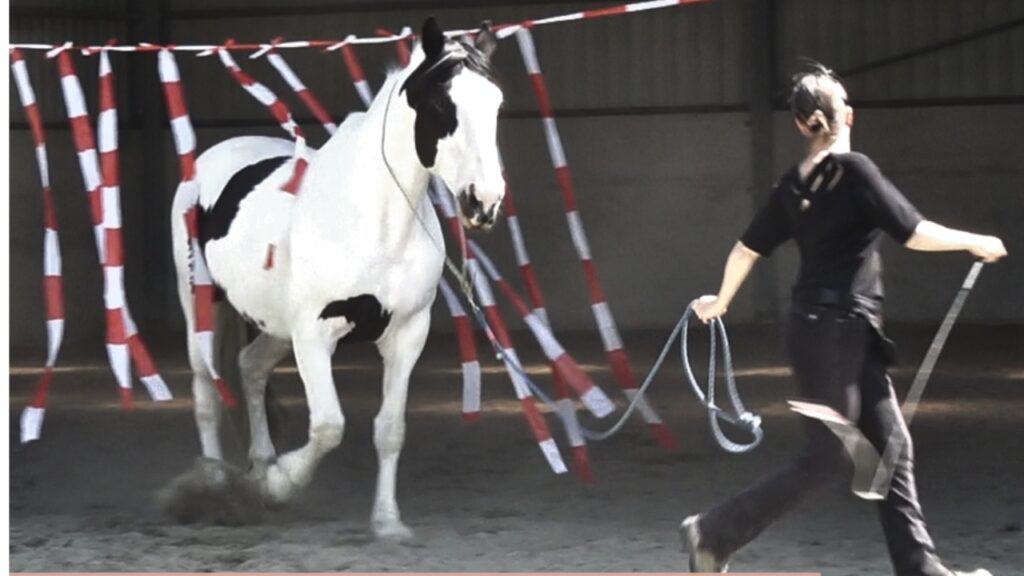 The visible line also influences the horse, making some horses want to keep more distance than when they are free. Or they might come too close, and then you need to clearly communicate with your body language that you want more distance.